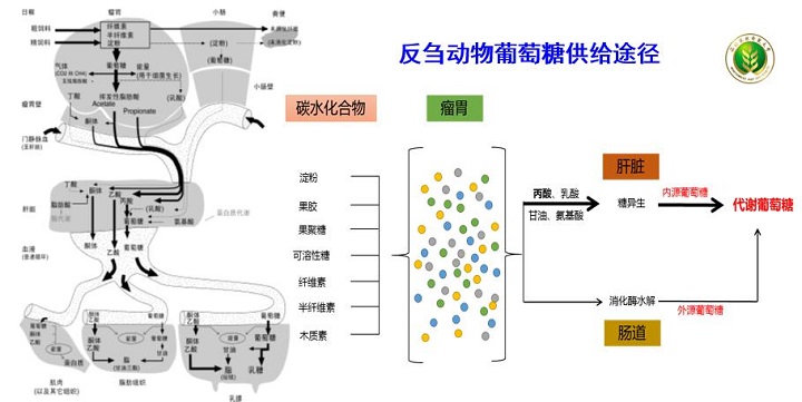 二是由非糖物質轉化合成的葡萄糖即糖原異生。后者在反芻動物體內占主要地位,而丙酸是反芻動物體內葡萄糖異生的主要前體物。