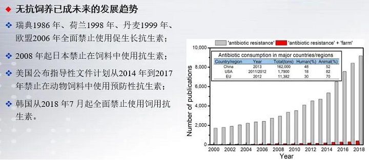 隨著抗生素在動物體內產生耐藥性以及對生態環境的污染,無抗飼養已成為未來畜牧業的發展趨勢,國家自2020年7月1日起禁止使用飼用抗生素,同時我國已具備進入無抗飼料的時代基礎。