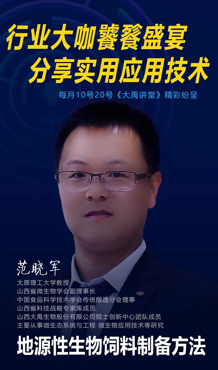 《大禹講堂》是大禹生物技術(shù)團(tuán)隊(duì)內(nèi)部技術(shù)培訓(xùn)、交流平臺,每月的10日、20日進(jìn)行兩期。本期范曉軍老師從以下四個方面講解了地源性生物飼料制備方法: